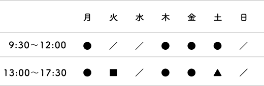 [休診日]毎週火曜午前、水曜、毎2・4週土曜午後、日曜・祝日